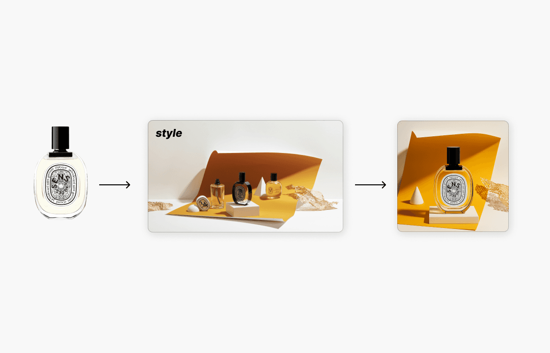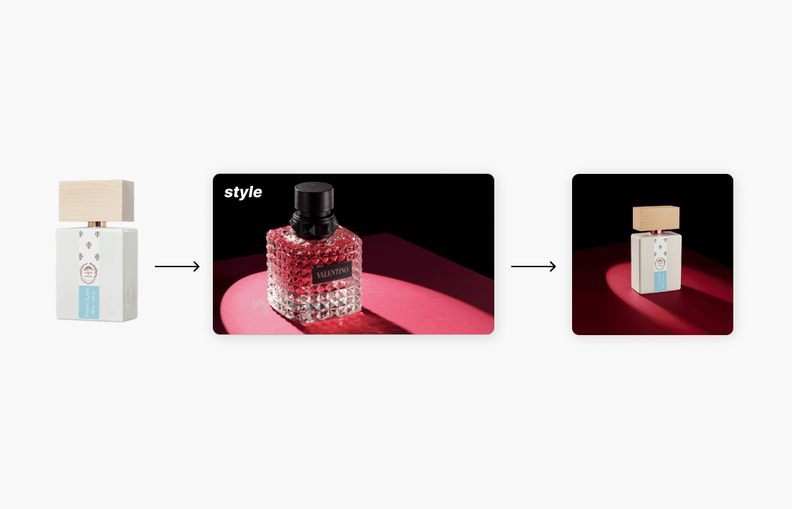 I also explored AI capabilities by generating a new image using only the real product, along with visual references and a description of the desired look and feel.