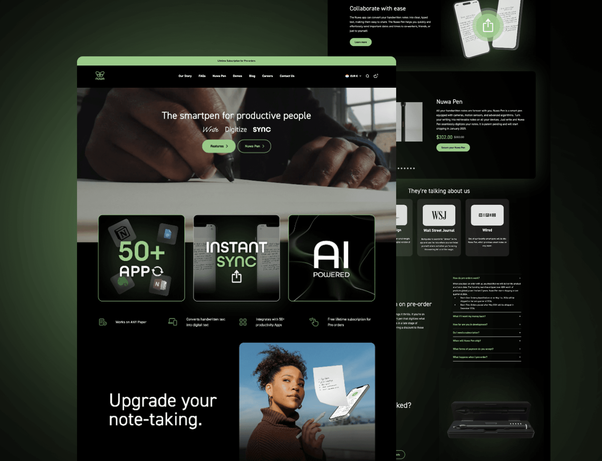 Nuwa Pen is an innovative product in its pre-launch phase. The design challenge was to create a landing page strategy that would motivate potential customers to pre-order before release.